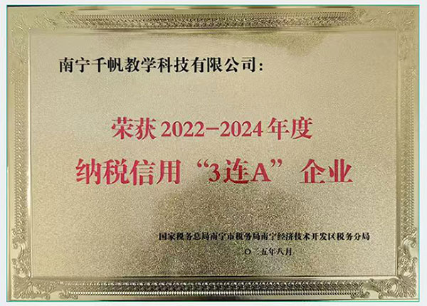 南宁千帆教学科技有限公司荣获2022-2024年度纳税信用“3连A”企业。